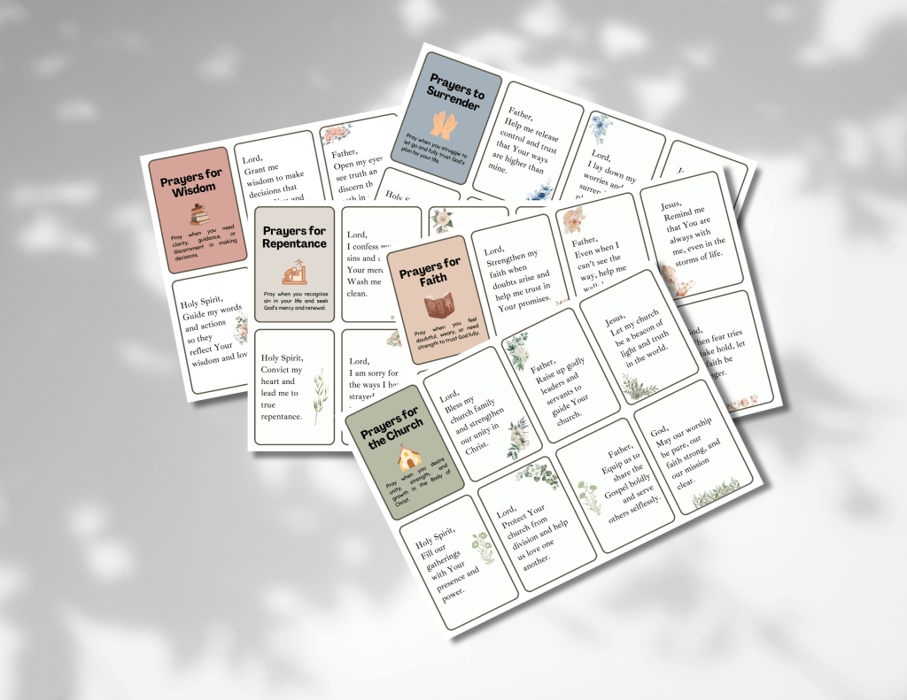 - A collection of prayer cards with powerful, faith-filled prayers